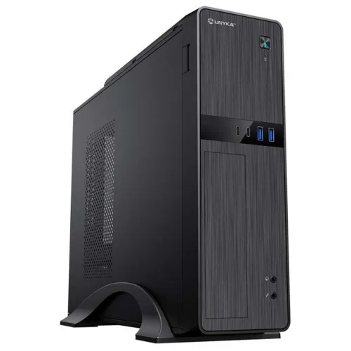 La parte anteriore del case UK2011 Slim MATX ha una finitura effetto alluminio, che gli conferisce un aspetto elegante e moderno. Oltre al suo design accattivante, il case dispone di due connettori USB 3.0 e due connettori di tipo C (USB 2.0), il che lo rende perfetto sia per ambienti professionali che personali. Include un alimentatore SFX da 450 W, rendendolo un´opzione pratica per la maggior parte degli utenti. Il suo design compatto e funzionale lo rende una soluzione ideale per progetti che richiedono un case senza eccentricità, ma con tutte le caratteristiche necessarie. E grazie ai due connettori di tipo C, questo case è pronto per l´ultima generazione del mercato che richiede questo tipo di connessione.
