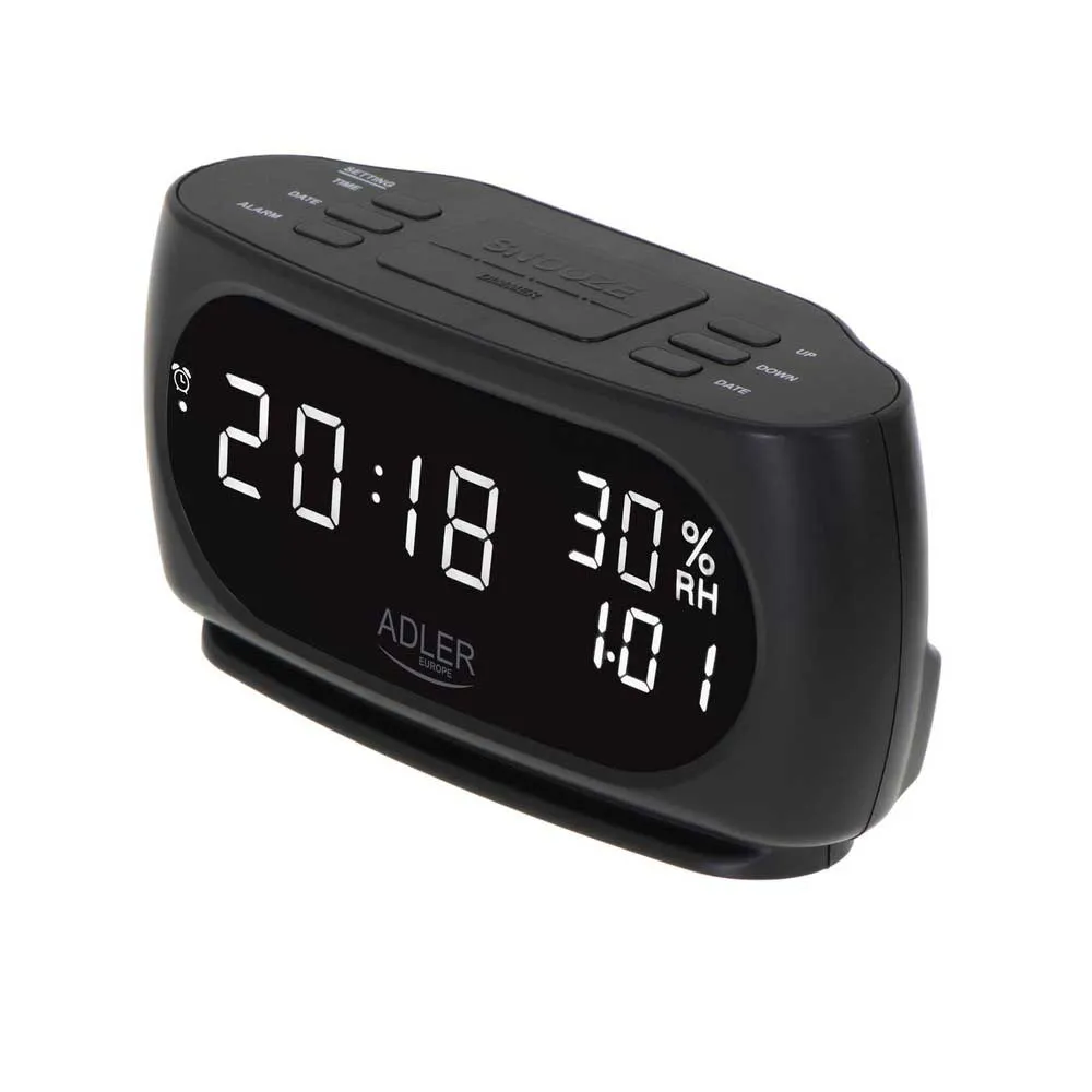 Begin uw dag geïnformeerd met de ADLER AD 1186. Deze elegante wekker beschikt over een groot, helder wit LED-display dat meer toont dan alleen de tijd. Zie direct de datum, binnentemperatuur en luchtvochtigheid om het comfort van uw kamer te bewaken. Met een eenvoudig in te stellen alarm, sluimerfunctie en instelbare helderheid voor dag of nacht, is het de perfecte metgezel op uw nachtkastje. Werkt op netstroom met een batterijback-up, dit moderne apparaat zorgt ervoor dat u altijd op tijd en op de hoogte bent, en combineert functionaliteit met een strak design dat in elk interieur past