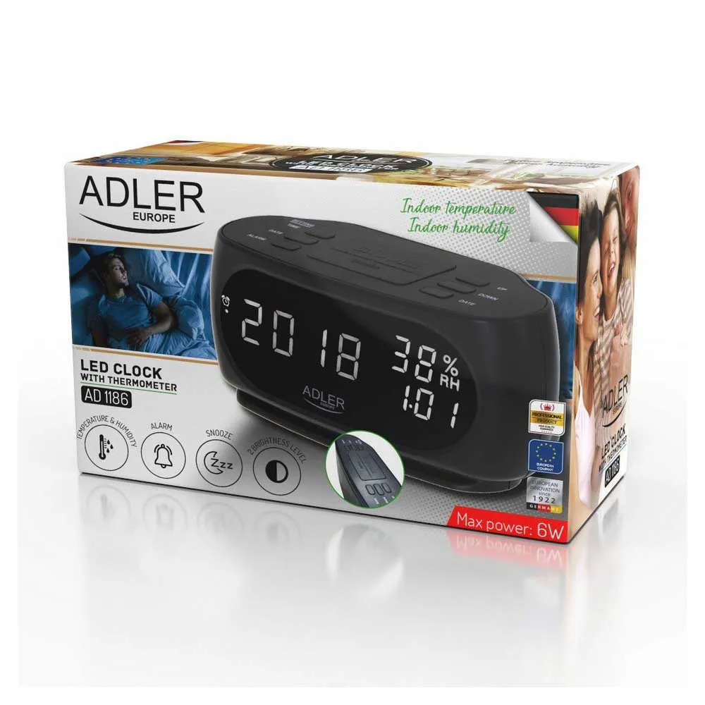 - De Adler AD 1186 W is de perfecte oplossing voor wie op zoek is naar niet zomaar een betrouwbare wekker, maar ook naar een apparaat dat hem helpt de omgeving in huis beter te begrijpen en te controleren. Met zijn moderne design past deze klok - wekker prachtig in elke ruimte en biedt hij zowel functionaliteit als gebruikscomfort.