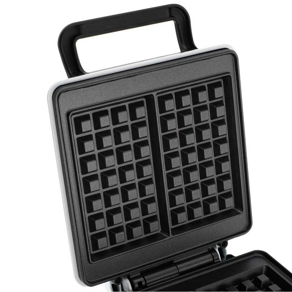 Belangrijkste productkenmerken:- Wafelijzer - Antiaanbakplaten - Koelblijvende handgreep - 2 controlelampjes voor stroom en bakken - Antislip rubberen voetjes - Antiaanbaklaag op de verwarmingsplaten - eenvoudig verwijderen van wafels en probleemloze reiniging.