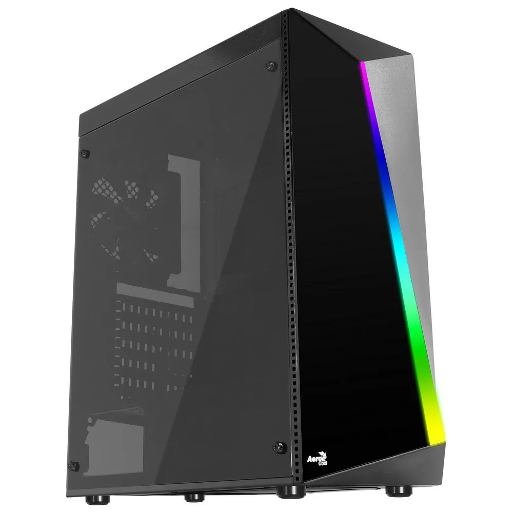 Hoogwaardige mid-tower-behuizing met een stijlvol RGB LED-ontwerp en acryl in het voorpaneel. Wordt geleverd met een volledig acryl zijpaneel om de binnenkant van uw rig te laten zien. Luchtopeningen aan de zijkanten van het voorpaneel zorgen voor een superieure luchtstroom en ventilatie.