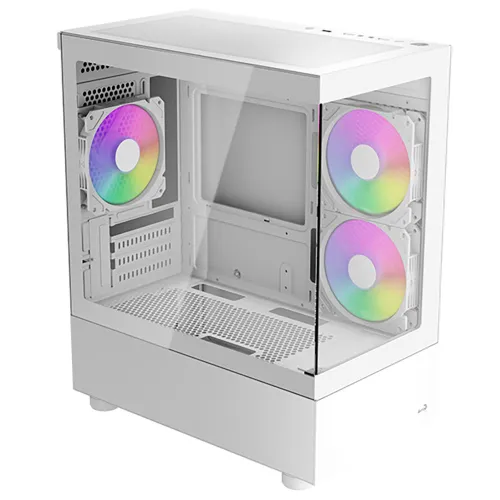 Verbluffende Panoramische Showcase: Met een volledig gehard glazen voor- en zijpaneel biedt de Viewport Mini een ongeëvenaard, kristalhelder zicht op uw interne componenten. Toon uw zorgvuldig gekozen moederbord, GPU en levendige RGB-verlichting in al hun glorie.