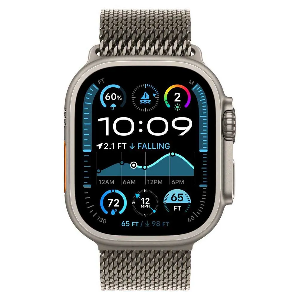 Specificaties: - Materiaal: 95% gerecycled titanium - In de doos: Apple Watch Titanium Milanese Loop-band Compatibiliteit: Apple Watch-modellen: - 44 mm - 45 mm - 46 mm - 49 mm