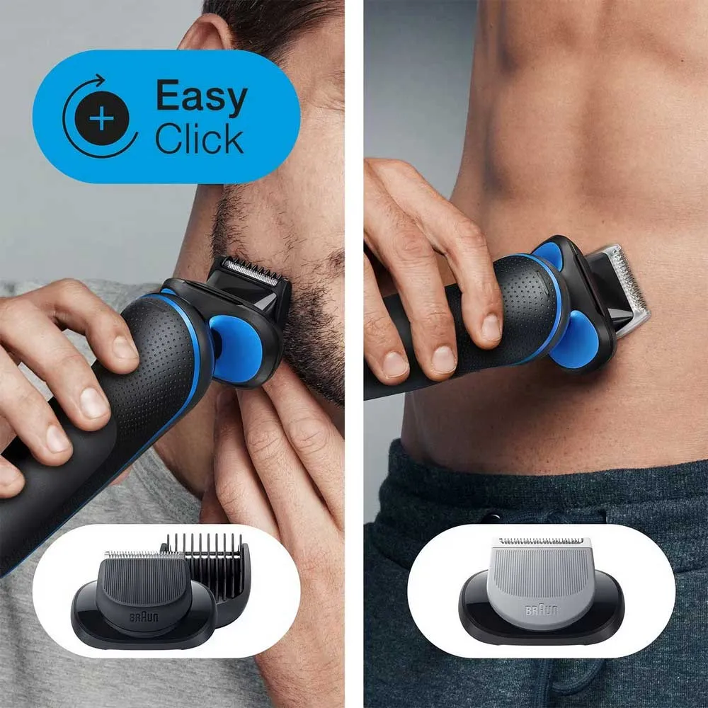 Uw scheerbeurt wordt aangedreven door een robuuste Li-Ion batterij die tot 50 minuten draadloze gebruiksduur levert na een volledige lading – genoeg voor ongeveer 3 weken scheren. Haast? Een snelle oplaadbeurt van 5 minuten levert voldoende stroom voor één complete scheerbeurt. De veelzijdigheid van het scheerapparaat wordt verder vergroot door het EasyClick-systeem, waarmee u uw apparaat kunt uitbreiden met een reeks compatibele opzetstukken voor al uw verzorgingsbehoeften. Deze set bevat een baardtrimmeropzetstuk om u te helpen uw look met precisie te stylen en te onderhouden