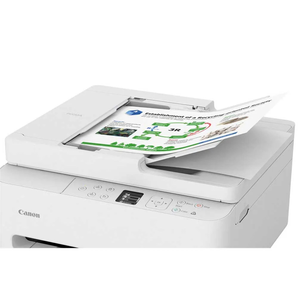 Met een strak, compact ontwerp en een kleinere voetafdruk past de PIXMA TS7550i multifunctionele printer met ADF moeiteloos in elke ruimte.