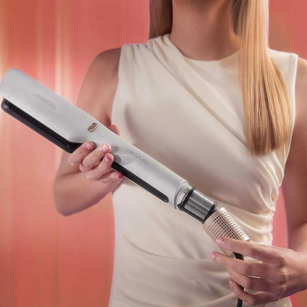 Ontdek de CECOTEC Air Lisse, de revolutionaire stijltang waarmee je alles kunt kiezen. Het unieke systeem stelt je in staat om te stylen met lucht, warmte, of beide, waardoor schade wordt geminimaliseerd terwijl het onberispelijke resultaten levert. Ionische technologie elimineert pluizig haar, terwijl de platen met keratine- en arganoliecoating zorgen voor een briljant gladde en gezond uitziende glans. Met 3 standen, meerdere warmte-/snelheidsinstellingen en een krachtige BLDC-motor is hij perfect aanpasbaar voor alle haartypes. Creëer je perfecte look met superieure verzorging. EU-stekker