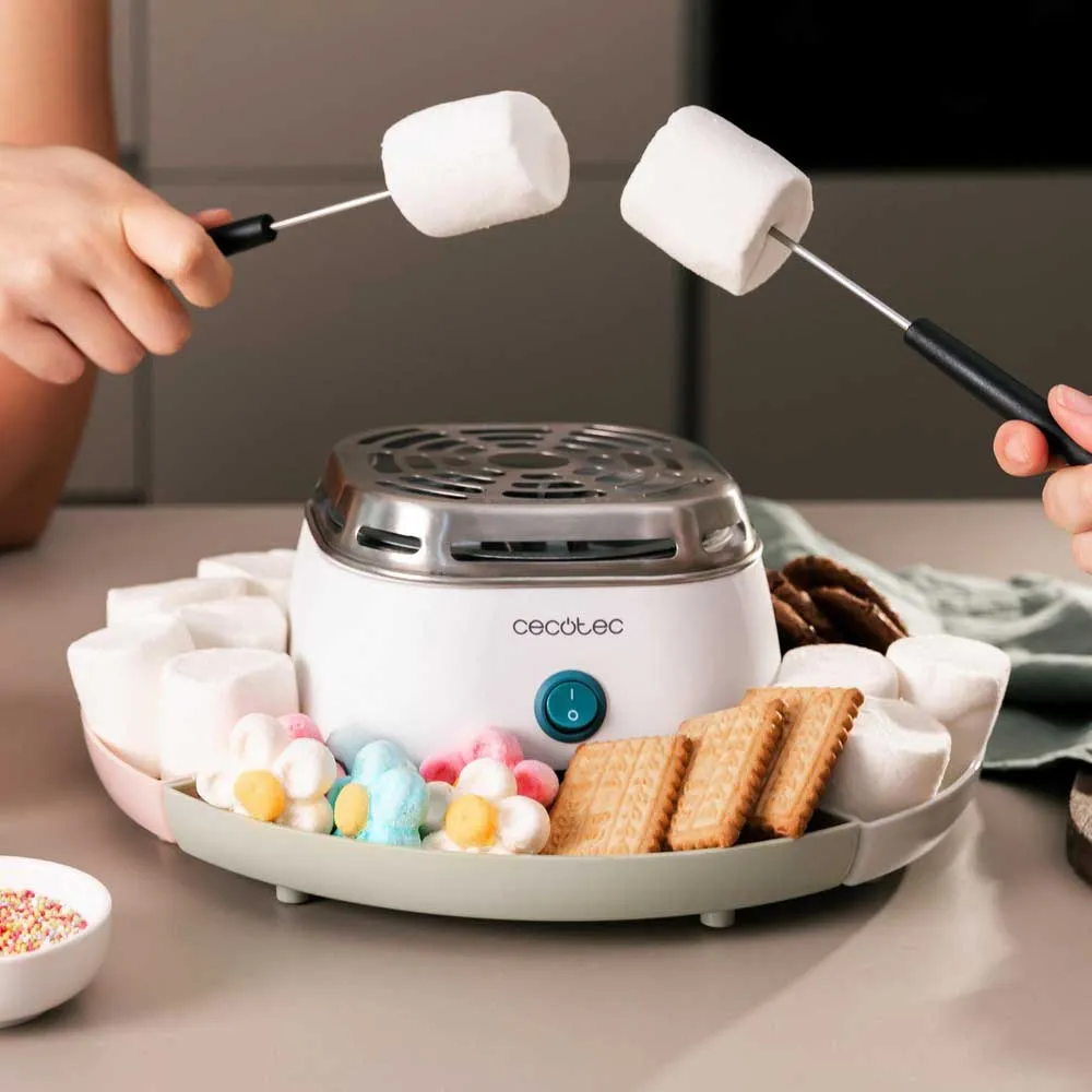 Creëer zoete, onvergetelijke momenten met de CECOTEC Fun&Sugar Marshmallow Warmer! Perfect voor feestjes en familieplezier, deze elektrische S´mores maker roostert marshmallows in enkele seconden perfect met zijn 270W vermogen. Het vlamvrije ontwerp garandeert veilig gebruik binnen of buiten. Het wordt geleverd met twee vorken voor gemakkelijk roosteren en vier verwijderbare bakjes voor het serveren van je favoriete toppings. Zet gewoon een schakelaar om en maak je klaar voor heerlijk, kleverig plezier. Eenvoudig te gebruiken, eenvoudig schoon te maken en perfect om te delen. EU-stekker