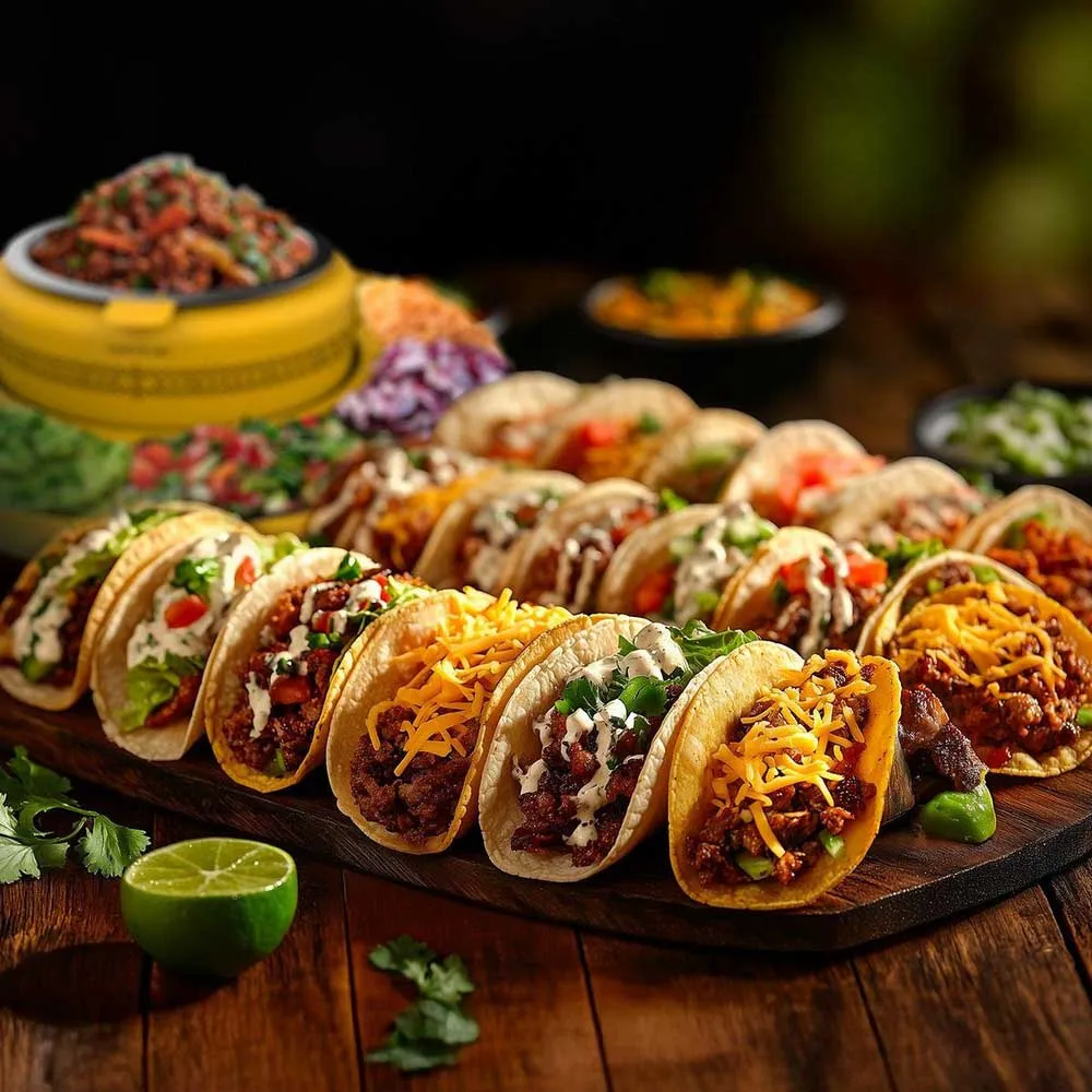 Verdeel de ingrediënten en taco´s in de vormen en stel ze naar wens en comfortabel samen.