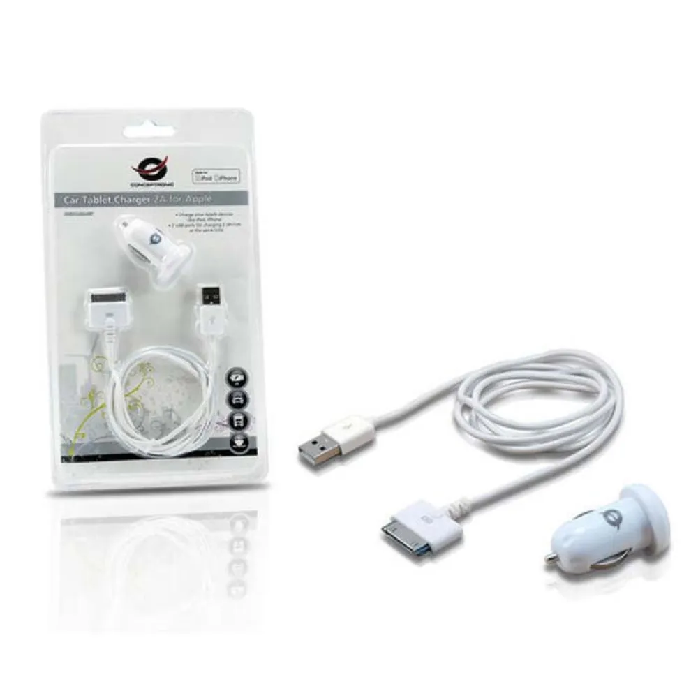 Deze Apple Kabel met Tablet Autolader is de ideale oplossing voor het opladen van uw iPod, iPhone of iPad via de sigarettenaansteker in uw auto, vrachtwagen of boot! De Tablet Autolader werkt met 12 - 24 volt en zet deze automatisch om naar de 5 volt die door USB-apparaten wordt gebruikt.