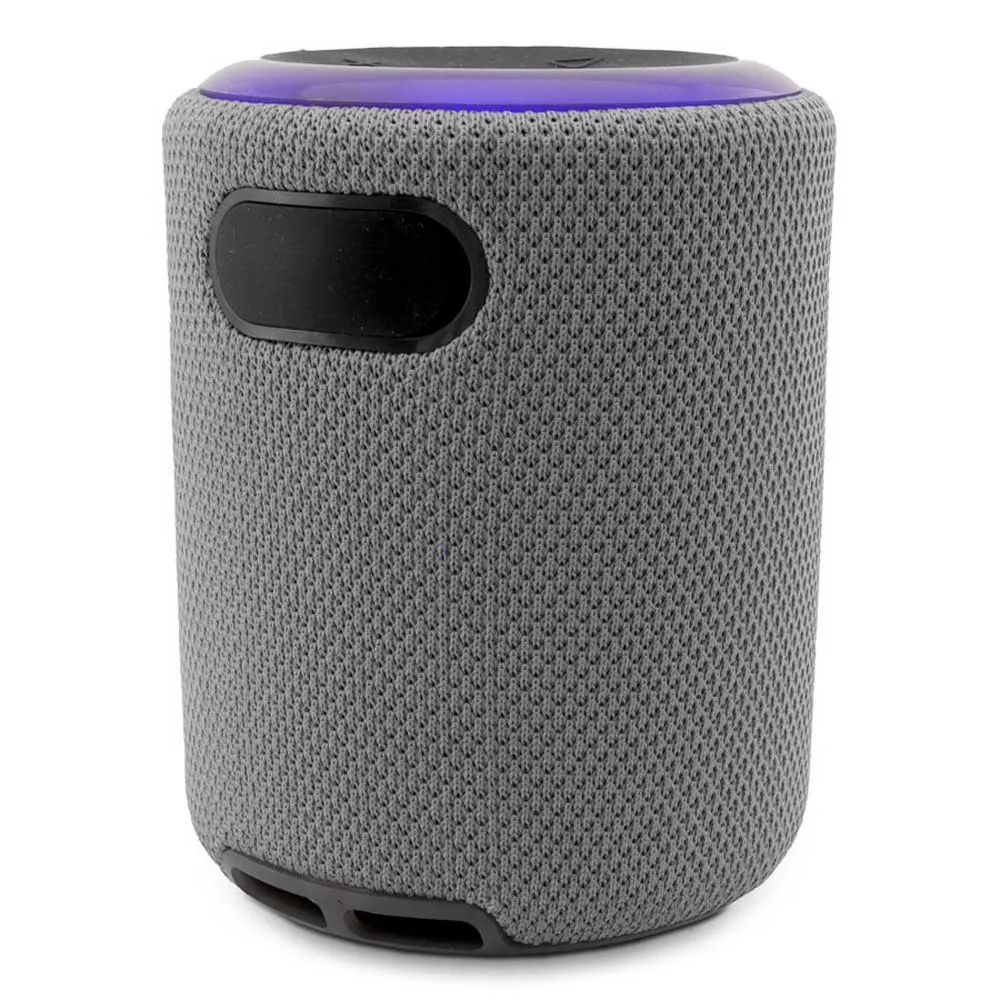 Met een compact formaat (82 x 82 x 105 mm), lichtgewicht (330 g) en elegant design in grijs met lichtgevende bovenring. Het laat je 6 uur lang naar muziek luisteren met een continue afspeelduur, en laadt in slechts 2,5 uur op dankzij de USB-C-aansluiting (kabel inbegrepen). Heldere en krachtige 5W RMS-geluid, maakt afspelen mogelijk via Bluetooth 5.3-verbinding, hulpkabel of microSD-kaart.