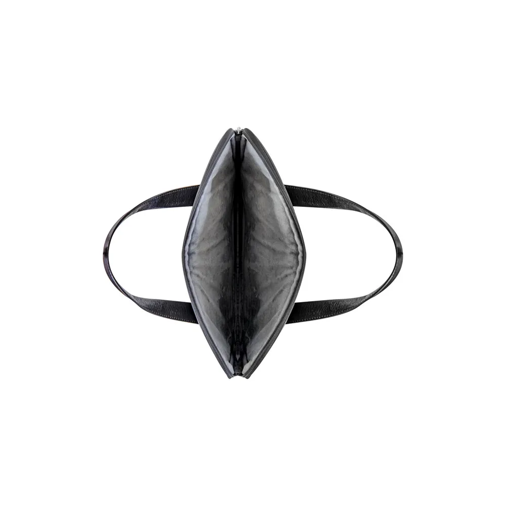 De tas is handgemaakt van duurzaam volnerfleer en heeft een slank en gestroomlijnd ontwerp dat een exclusieve uitstraling creëert.
