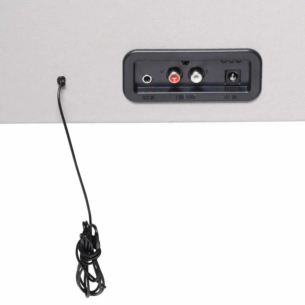 smartphone. USB voor MP3-weergave & encoding. FM stereo radio. RCA uitgang. Koptelefoonaansluiting. Retro look met kofferdesign en zwarte poten.