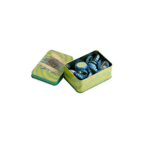 Inhoud: Een serie unieke replica flesdoppen met verweerde afwerking en één (1) thematisch verzamelblik.