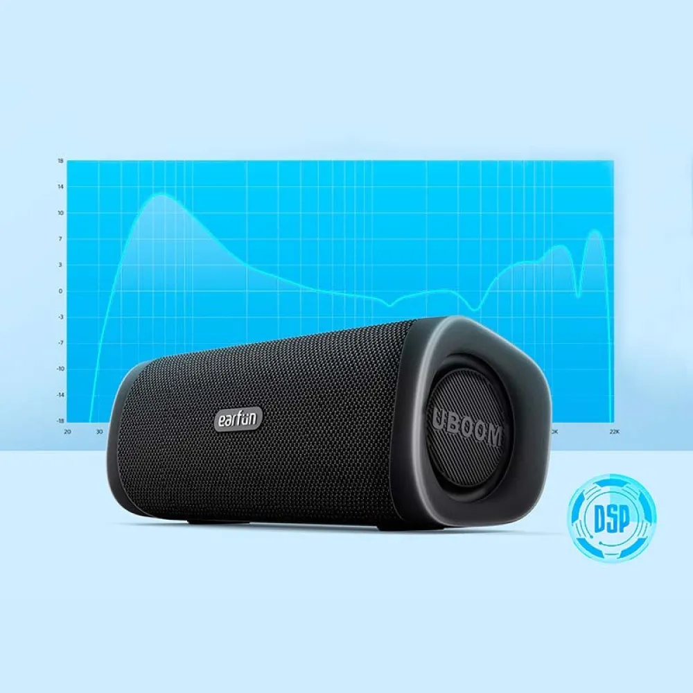 - Hoe dan ook, geniet van diepe, dreunende bas met de innovatieve JumboBass™-technologie van de EarFun UBOOM L-speaker. Dubbele passieve radiatoren werken samen met 55 mm dynamische basversterkingsspeaker om lage tonen te versterken, wat een duidelijk impactvolle geluidservaring oplevert.