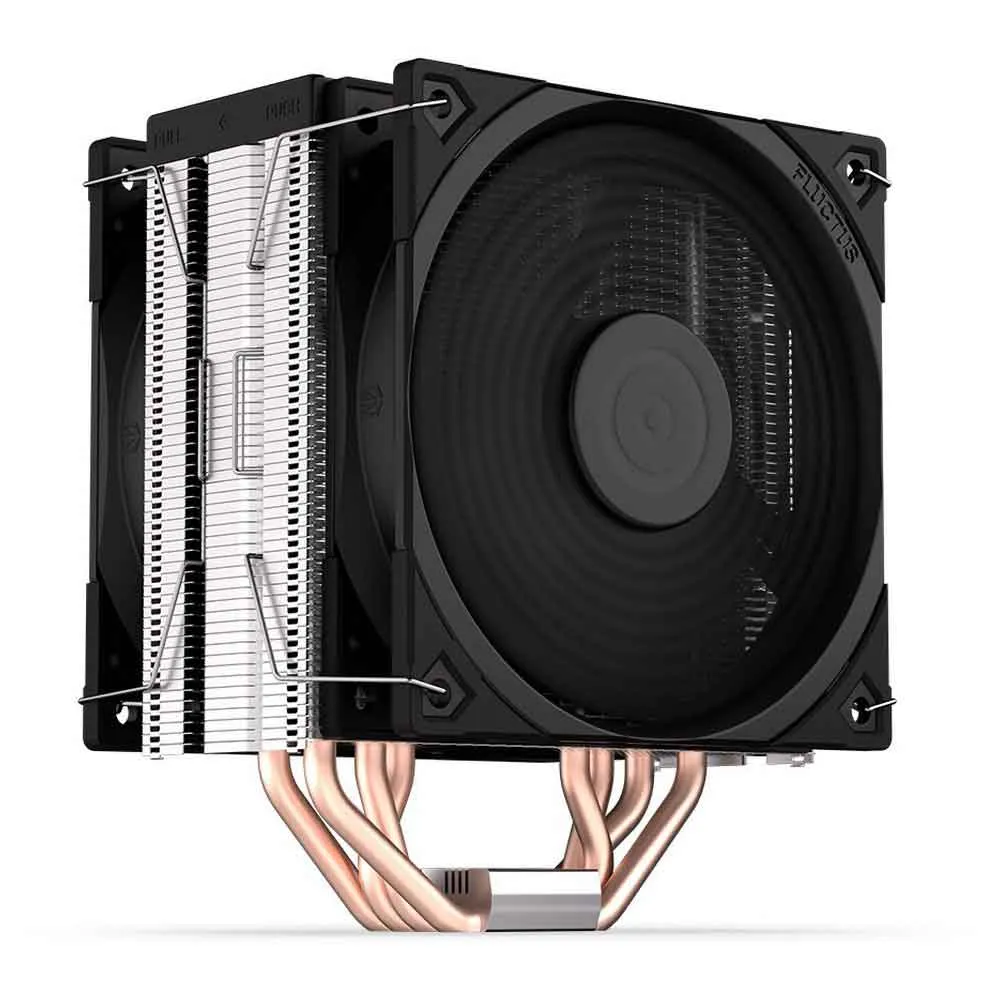 Iemand zei dat koelapparatuur ofwel mooi ofwel efficiënt kan zijn? Laat hem/haar onze koeler zien. De Fera 5 Dual Fan ziet er geweldig uit en is aangenaam stil omdat hij – dankzij twee Fluctus 120 PWM ventilatoren – de temperatuur verlaagt zonder onnodige geluiden op de achtergrond. Het is als een echte koude douche na een marathon voor je PC, en extra uren levensduur met hoge snelheid klikken voor jou.