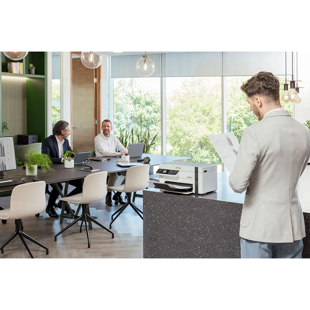 - Druk overal in het kantoor af met een Wi-Fi-verbinding en de gratis mobiele afdrukapps van Epson5.