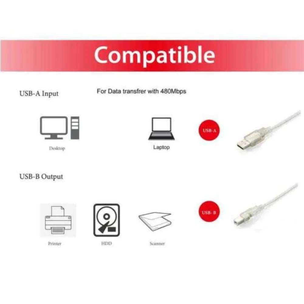 De equip USB type A male naar type B male kabel is van hoge kwaliteit met dubbele afscherming om te helpen bij het leveren van ultrasnelle en foutloze datatransmissies voor topprestaties. Simpelweg plug-and-play om een computer (PC/Mac) of USB-hub aan te sluiten op een printer, scanner, multifunctionele printer (MFP) of andere USB-randapparatuur om een volledige high-speed overdrachtssnelheid van maximaal 480 Mbps te bereiken.