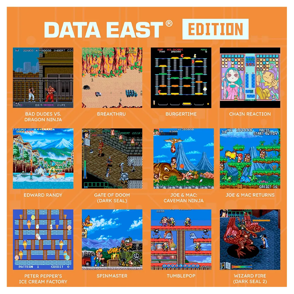 Duik direct in de actie met 17 officieel gelicenseerde, veelgeprezen arcadegames van de legendarische uitgever Data East. Van de iconische brawler *Bad Dudes vs. DragonNinjatot de verslavende puzzelactie van *BurgerTimeen de snelle sporten van *Street Hoop*, deze collectie biedt een perfecte doorsnede van de arcade geschiedenis, voorgeladen en klaar om direct te spelen.