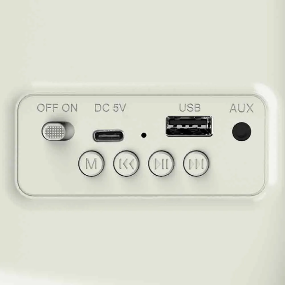 Meerdere Afspeelopties: Uitgerust met een USB-poort en een SD-kaartlezer voor directe weergave van uw MP3-muziekbestanden, plus een AUX-IN-aansluiting voor bekabelde verbindingen.