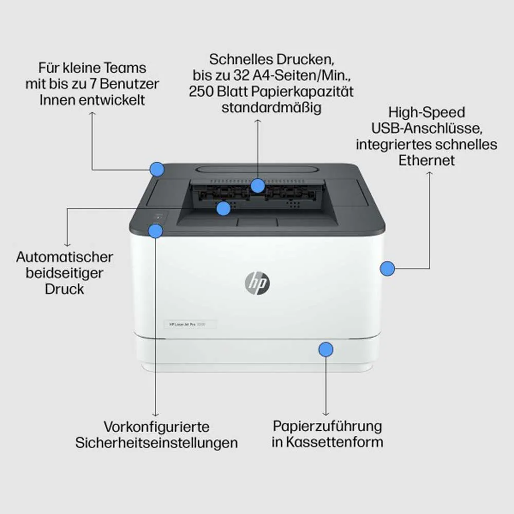 Ervaar krachtige productiviteit met de HP LaserJet Pro 3002DW. Ontworpen voor kleine en middelgrote bedrijven, biedt deze monolaserprinter razendsnelle afdruksnelheden tot 33 ppm en efficiënt automatisch dubbelzijdig afdrukken. Geniet van probleemloos beheer en betrouwbare prestaties voor soepel dagelijks gebruik. Maak naadloos verbinding met Wi-Fi, Ethernet en mobiele afdrukopties zoals Apple AirPrint. Krijg documenten van professionele kwaliteit met een scherpe resolutie van 1200x1200 DPI. Deze compacte en efficiënte printer is uw sleutel om u te concentreren op uw bedrijf, niet op uw hardware. EU-STEKKER