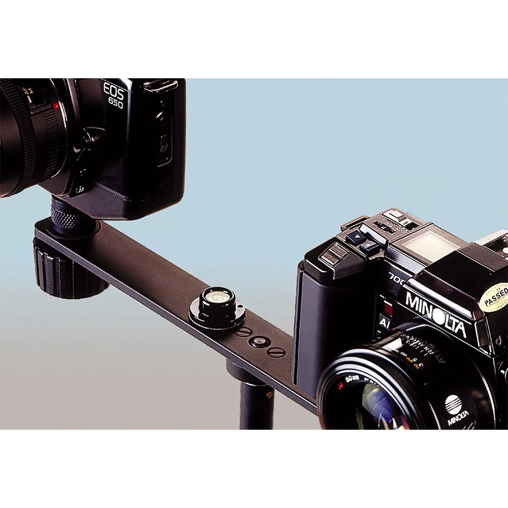 Circulair bubbel, zelfklevend. Voor permanente bevestiging aan camera's, statieven, enz. Met drie gaten voor schroefbevestiging. Aluminium behuizing, zwart geanodiseerd.