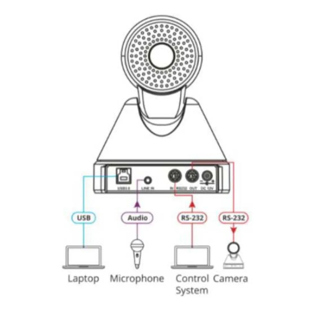 - Werkt met andere vergaderapparaten via IR- en RS232-communicatie, waardoor de bestaande AV-infrastructuur kan worden gebruikt