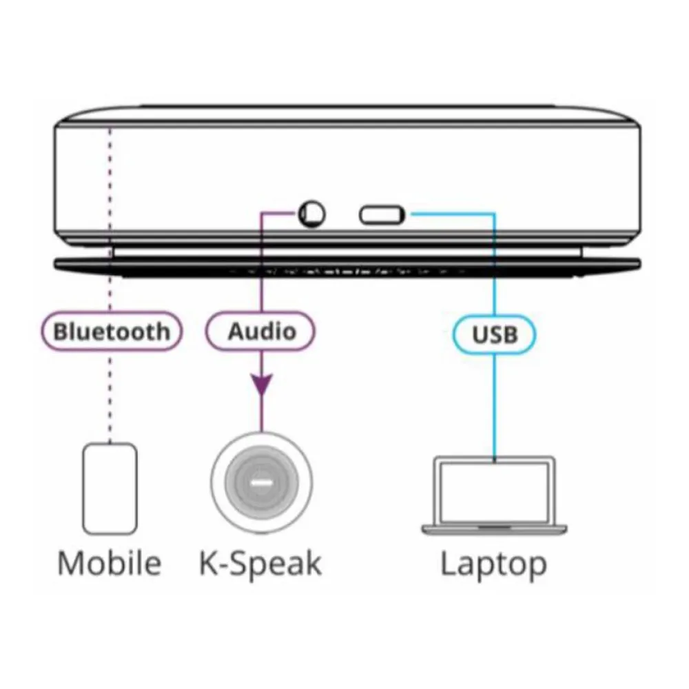 Omnidirectionele, compacte speakerphone voor kristalhelder geluid. Zorg ervoor dat alle deelnemers aan de vergadering duidelijk te horen zijn vanaf elke stoel in de kamer. Met 360° omnidirectionele audio-opname, high-fidelity geluid en eenvoudige bediening, verbetert de K-Speak de audio-ervaring voor iedereen - of het nu in de kamer is of op afstand. Het kleine formaat en de meerdere verbindingsopties passen perfect in huddle rooms en kleine vergaderruimtes, waar tafelruimte schaars is.