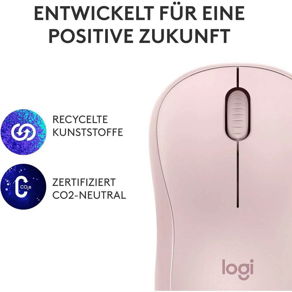 - De plastic onderdelen van de M240 Silent PC Mouse bevatten gecertificeerd gerecycled plastic na consumptie (48% voor Graphite en 37% voor Off-white en Rose)