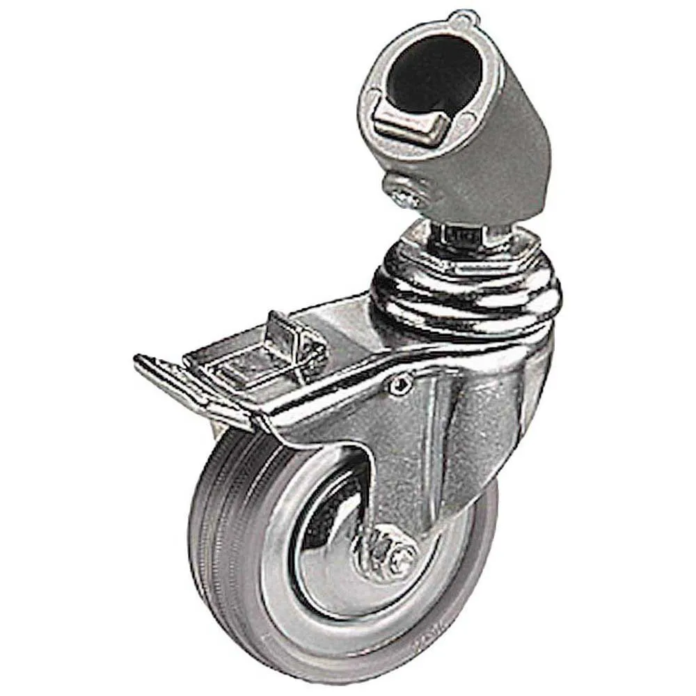 Set van drie wielen met adapter voor poten met een diameter van 22 mm, remmen en M10-bevestiging. Deze wielen kunnen een maximaal laadvermogen van 75 kg dragen.