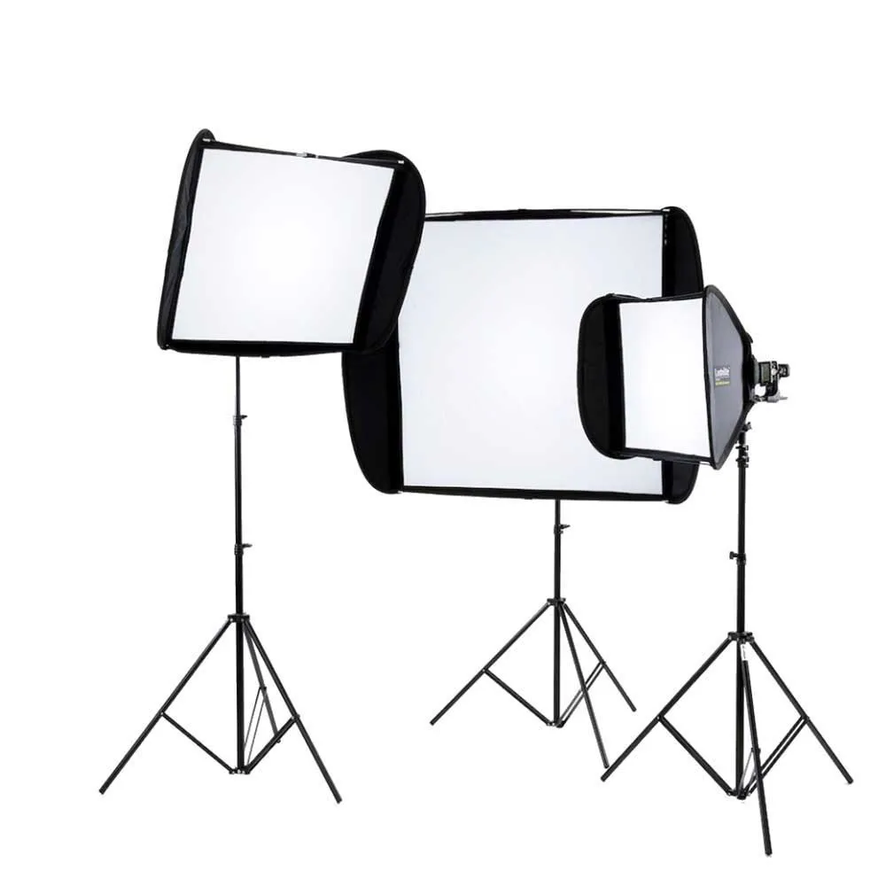 De Ezybox Pro Lighting Softbox is ontworpen voor studioflitsers, flitsers op batterijen en de Elinchrom Ranger Quadra Rx. Ontworpen om te voldoen aan de eisen van professionele fotografen die fotograferen met studioflitser en batterijflitser. Met de Ezybox Pro Lighting Softbox kunt u één softbox meenemen die in uw hele verlichtingsset past en van de ene naar de andere overschakelt met behulp van eenvoudige connectoren, zonder enige aanpassingen aan de softbox zelf te maken. Snel te monteren, de verlichtingssoftbox springt gewoon open en wordt vastgezet met behulp van 2 steunstaven en ons unieke Ezybox Pro softboxframe. De Ezybox Pro Square is verkrijgbaar in 3 maten. Klein, middelgroot en groot. Het beschikt over binnen- en buitendiffusers die, wanneer ze samen worden gebruikt, een lichtverlies van twee stops produceren en eenvoudigweg de juiste verbindingsset vereisen, afhankelijk van de door u gekozen lichtbron(nen).