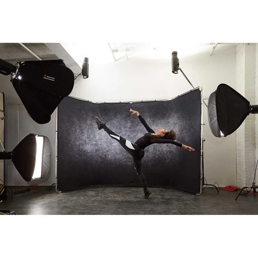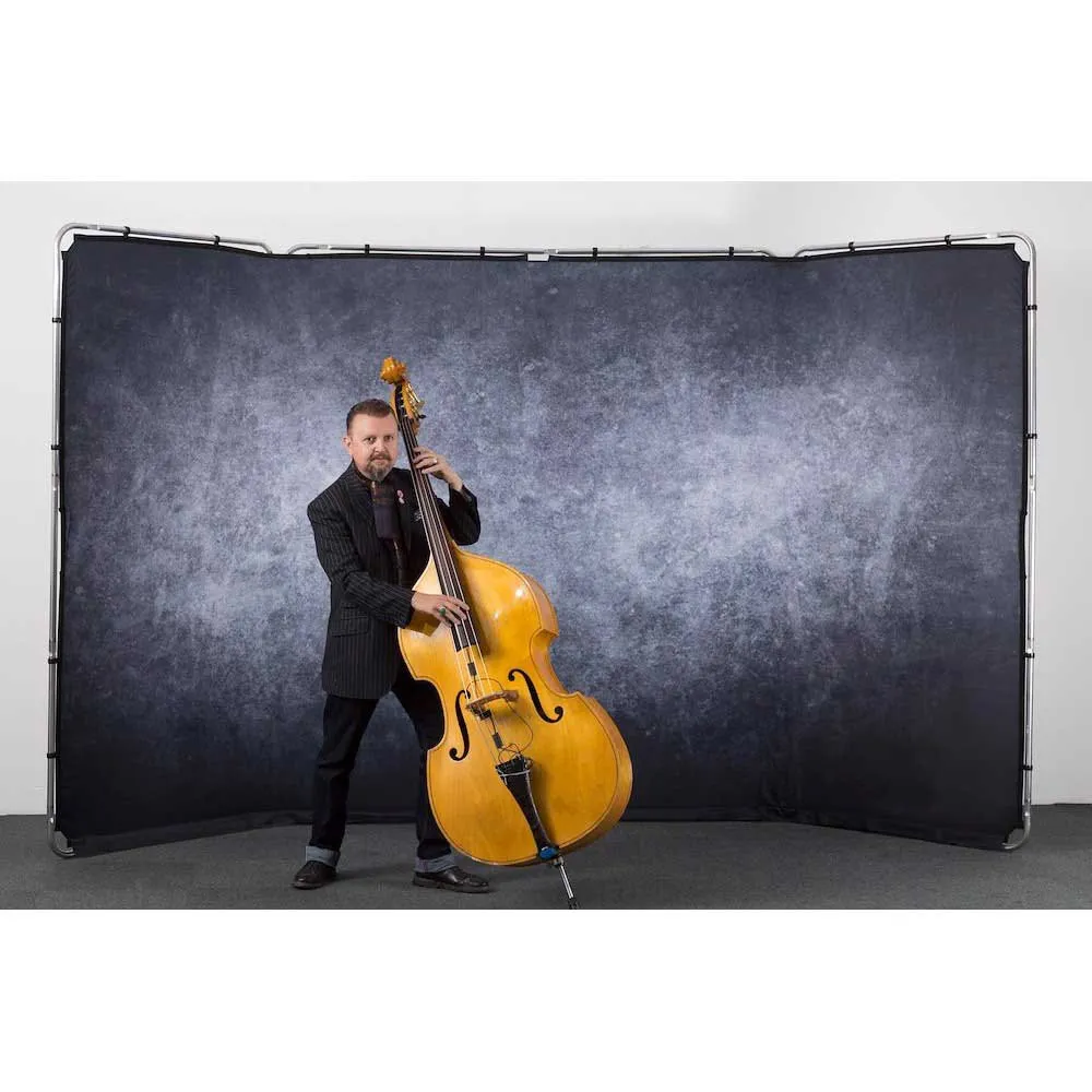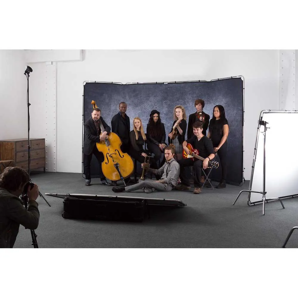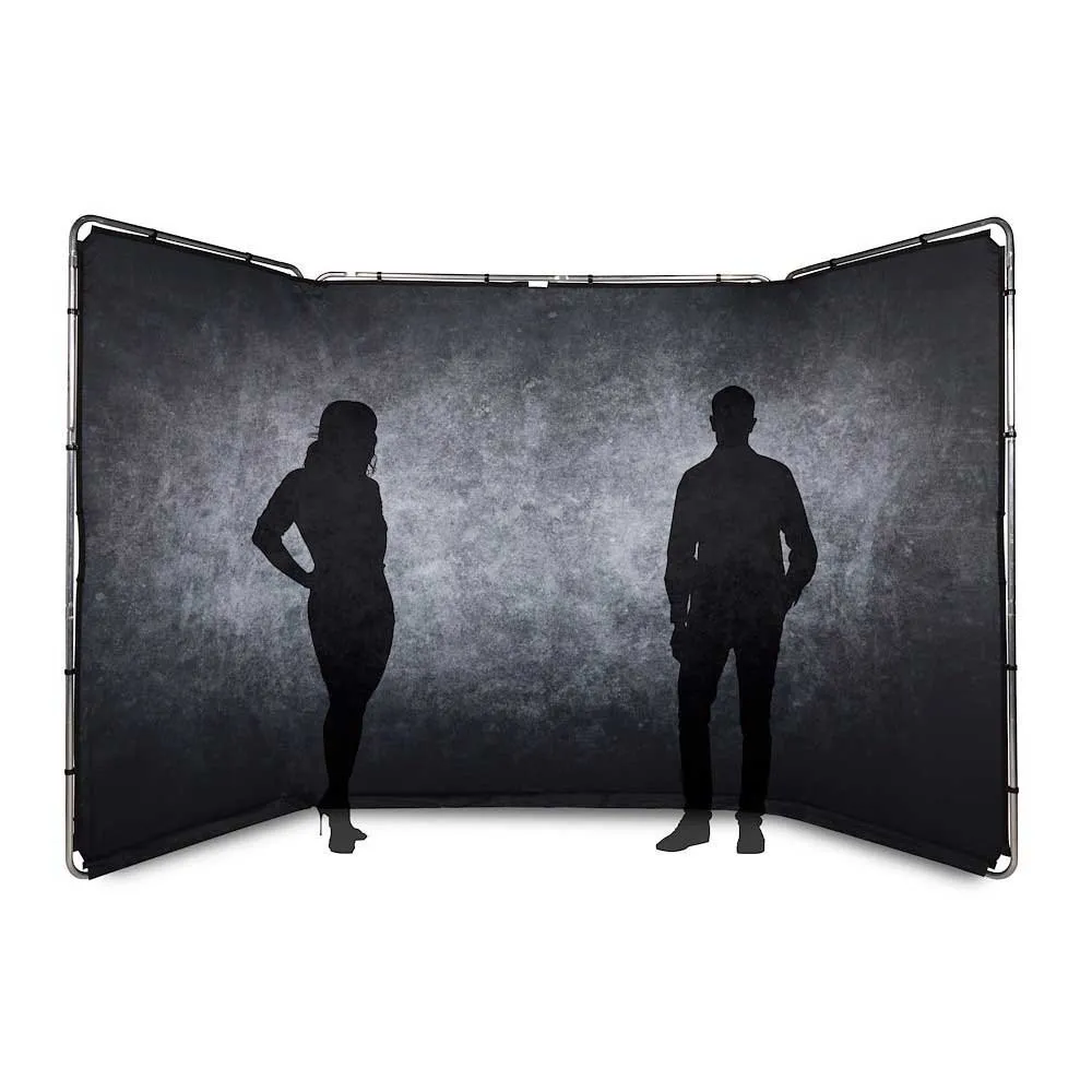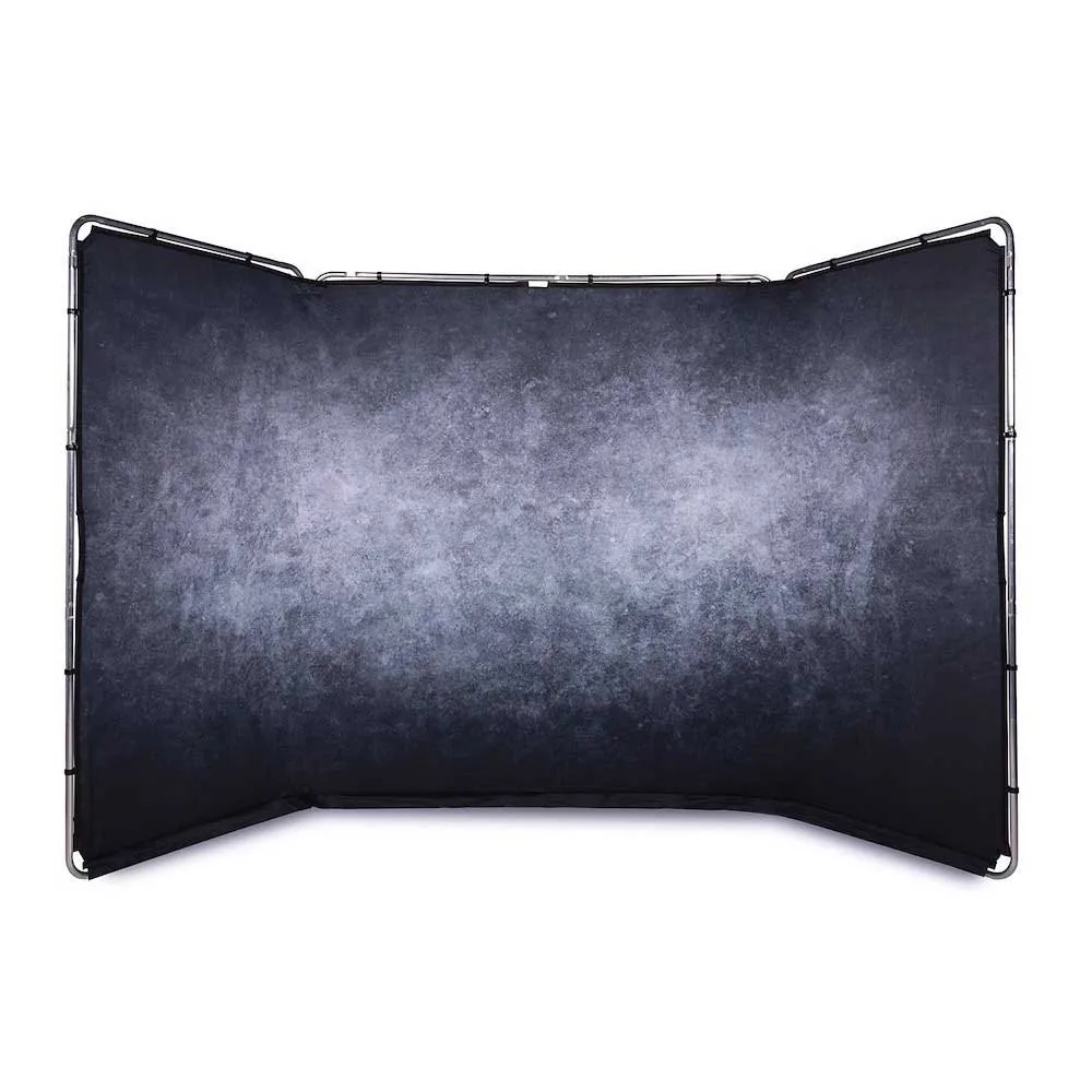 Panoramische fotografie Achtergrond zelfdragend frame en granieten deksel. Deze kit wordt ook compleet geleverd met de stoffen tas Panoramische achtergrond. De granieten hoes biedt een steentextuureffect met een volledig scala aan grijstinten en een donker vignet rond de randen. Sterke, eenvoudig te bevestigen clips zorgen ervoor dat de stoffen hoes snel kan worden bevestigd en verwijderd van het frame, terwijl de hoes stevig genoeg wordt vastgehouden om eventuele vouwen te verwijderen.