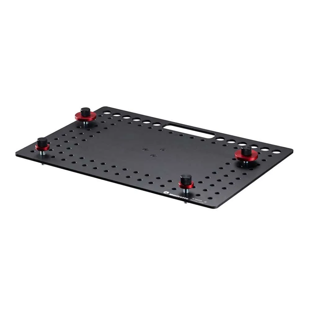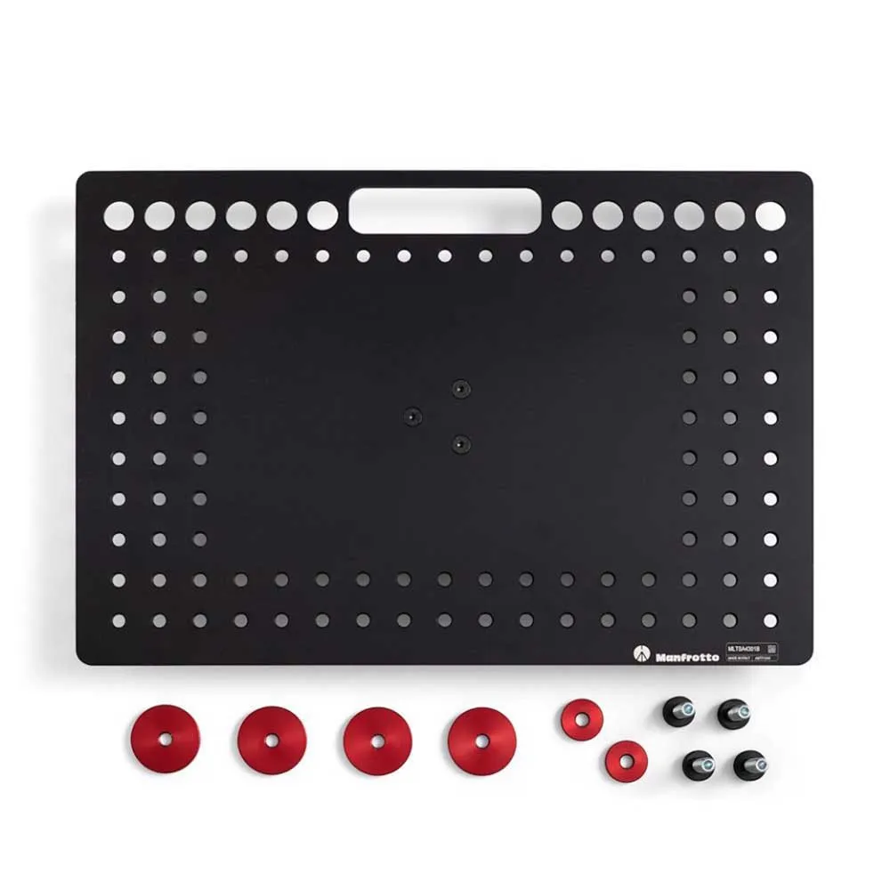 Het Tethergear-laptopdeck is gemaakt van 4,8 mm (0,18") dik lichtgewicht aluminium en meet 46 cm x 31 cm (16,14" x 12,20"). Grip- en ondersteuningsapparatuur zoals lichtstatieven, camerastatieven en steunarmen. Geïnspireerd door de bioscoop- en gripindustrie Kaasplaatstijlaccessoires, beschikt het over een reeks montagegaten met schroefdraad van 3/8 inch op belangrijke locaties, waardoor laptops van elk formaat veilig op hun plaats kunnen worden vastgezet met behulp van de meegeleverde antislip montagehardware. De Hole-configuratie bevat ook een handige kabelbeheerfunctie om te voorkomen dat kabels losraken van het apparaat, mocht de gebruiker er per ongeluk aan trekken tijdens de opname. Meerdere montageopties via de meegeleverde adapter die onder het deck is gemonteerd, met: 16 mm (5/8") vrouwelijke aansluiting, 1/4'''' en 3/8" schroefdraadgaten en Arca-Swiss-compatibiliteit, waardoor de gebruiker ongeremd kan fotograferen En werk met hun favoriete foto- of verlichtingsondersteuning.Manfrotto Tethergear is een verzameling Tethered-opnameaccessoires die zijn ontworpen en gemaakt voor de professionele maker van inhoud, essentiële accessoires die nodig zijn om een Tethered-werkstation of videodorp op te zetten met behulp van monitoren, laptops of tablets.