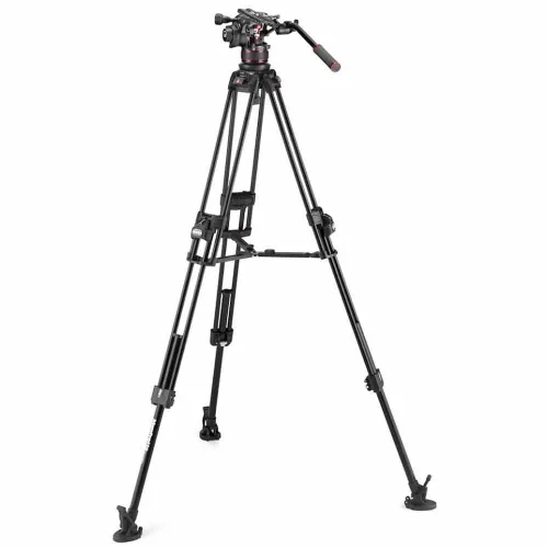 Het videosysteem omvat de Manfrotto NITROTECH 612 Fluid Video Head en het 645 Fast Twin Tripod van aluminium.