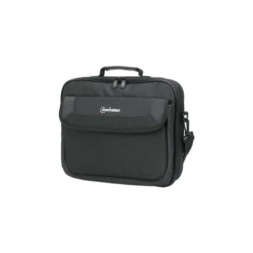 Manhattan Cambridge Laptoptas 14.1´´, Clamshell Design, Zwart, LAGE KOSTEN, Accessoirevak, Documentenvak aan de achterkant, Schouderriem (afneembaar), Equivalent aan Targus CN313/CN414EU, Notebook Case, Drie jaar garantie.