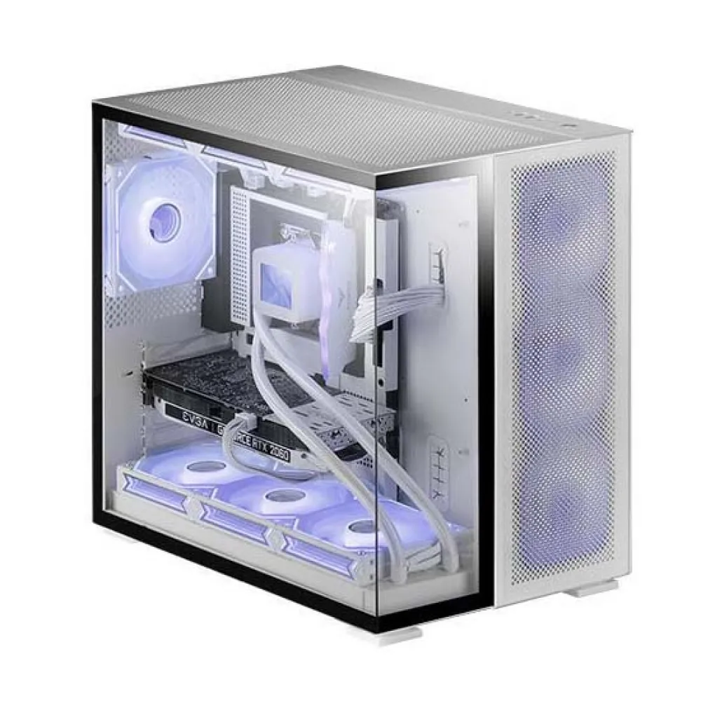 Met een dubbel doorlopend frameloos paneel van gehard glas, volledige ondersteuning voor vloeistofkoeling en geoptimaliseerde ruimte voor hoogwaardige componenten, is het de perfecte keuze voor krachtige builds.