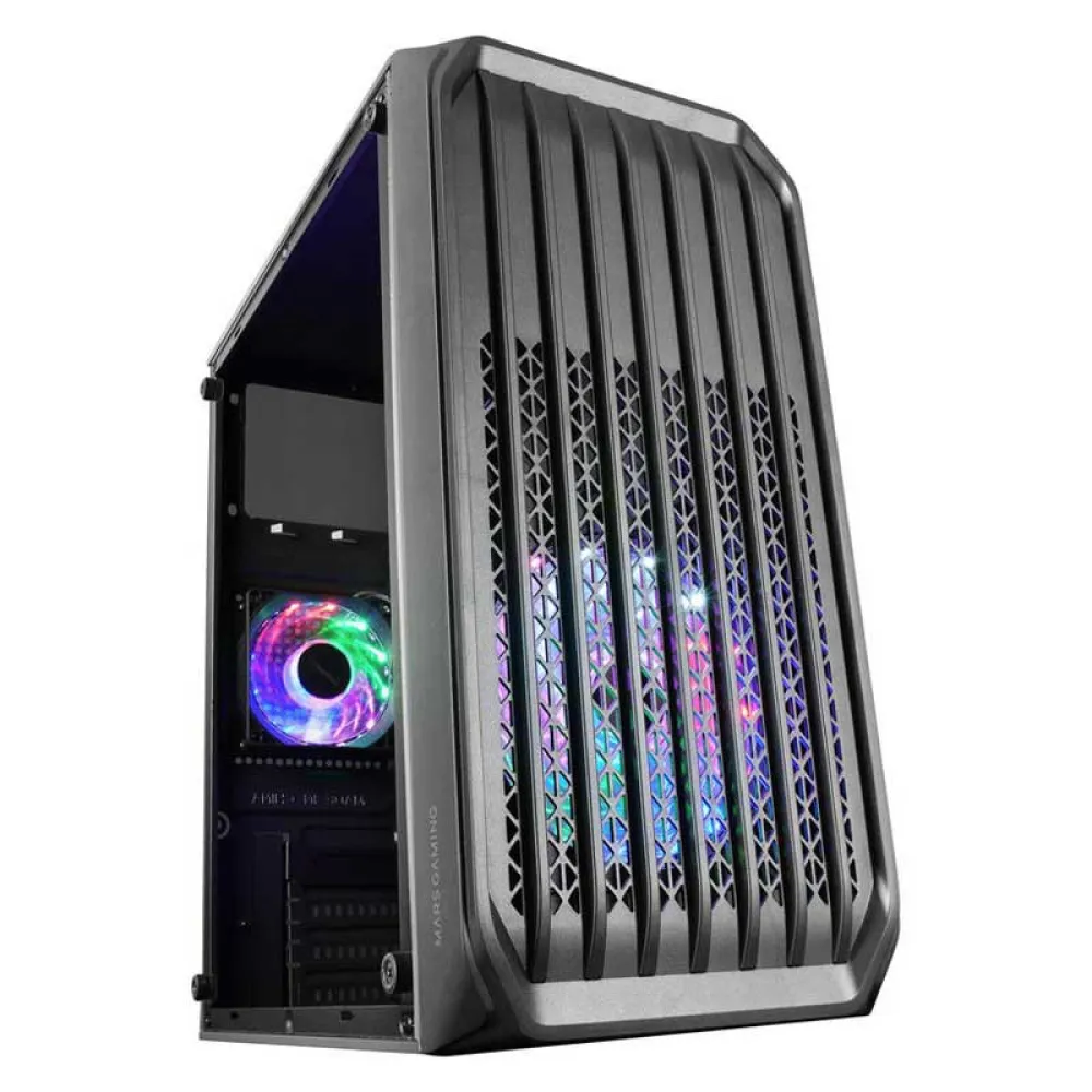 Mars Gaming MC-S2 Zwarte Compacte Micro-ATX Gaming PC Kast 2 FRGB Regenboog Ventilatoren met Frontrooster Volledige Zijruit.