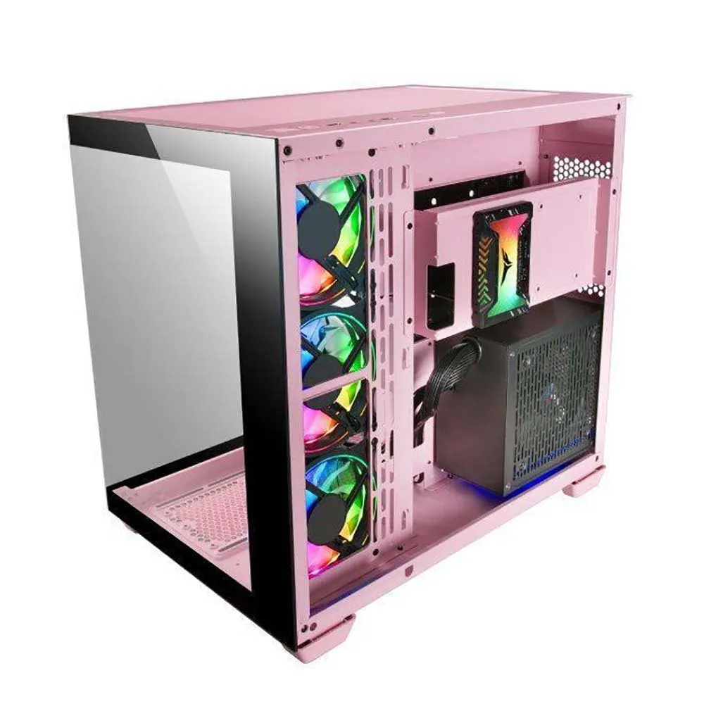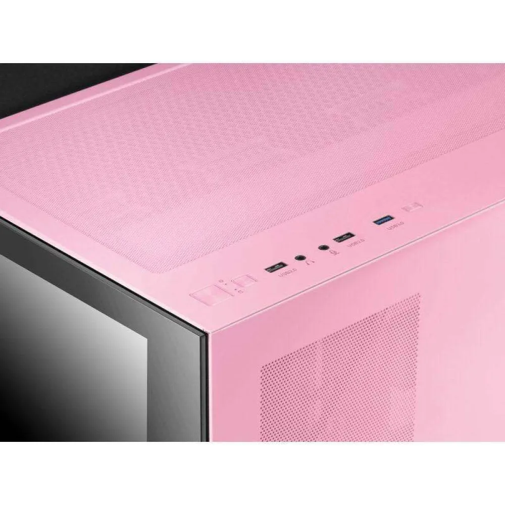 Mars Gaming MCV4 Roze Custom XXL E-ATX Gaming Tower Frameloos Voor- en Zijkant Gehard Glas Raam Modulaire Dubbele Kamer Structuur.