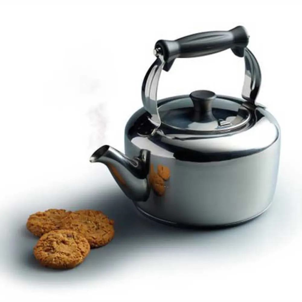 Deze 2-liter fluitketel is gemaakt van robuust roestvrij staal en vervaardigd in het traditionele boerderijontwerp.