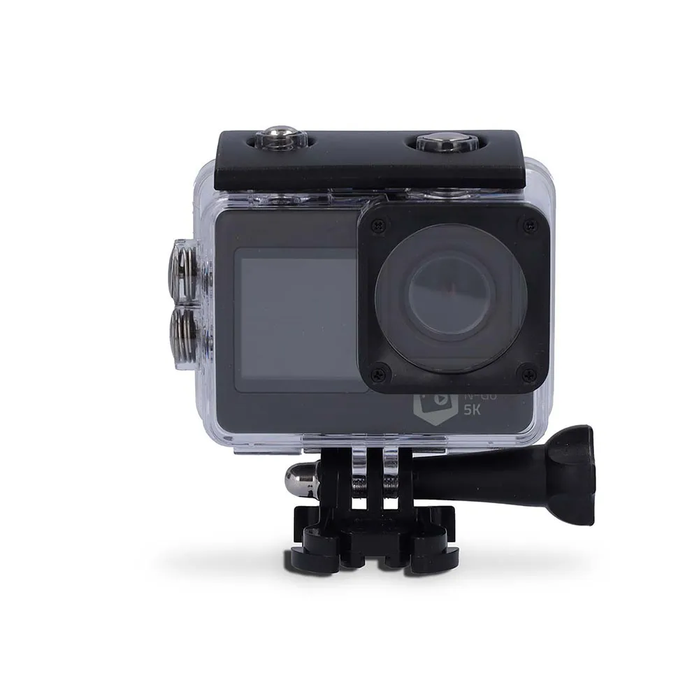 Actiecamera met dubbel scherm en 5K HD-resolutie.