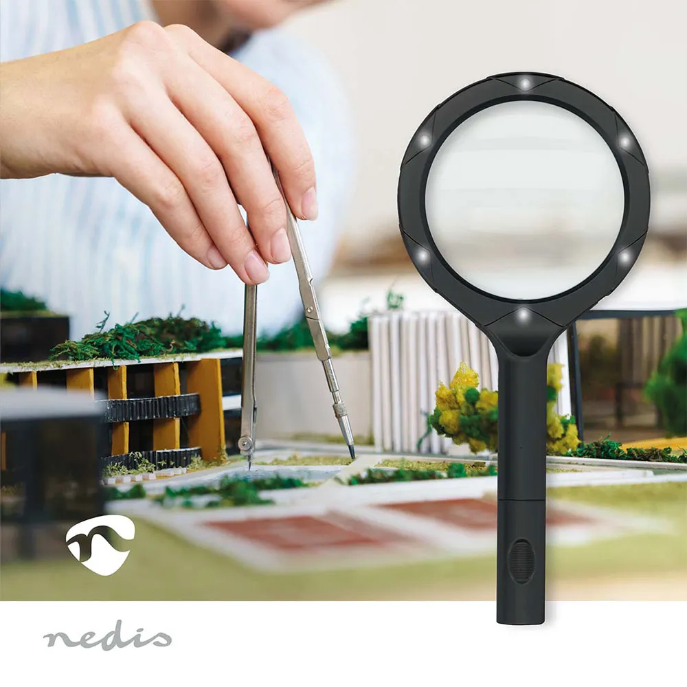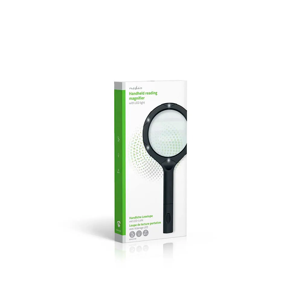 Ontdek een wereld van detail en breng kristalheldere focus aan op de kleinste objecten met het NEDIS MAGH1BK Handheld Vergrootglas. Of u nu moeite heeft met het lezen van de kleine lettertjes op documenten en medicijnflesjes, of een toegewijde hobbyist bent die een nadere blik nodig heeft op ingewikkelde details, dit veelzijdige gereedschap is ontworpen om uw zicht te verbeteren en oogvermoeidheid te verminderen. Het combineert krachtige vergroting, briljante verlichting en ergonomisch ontwerp in één onmisbaar apparaat, waardoor het een perfecte metgezel is voor een breed scala aan taken.