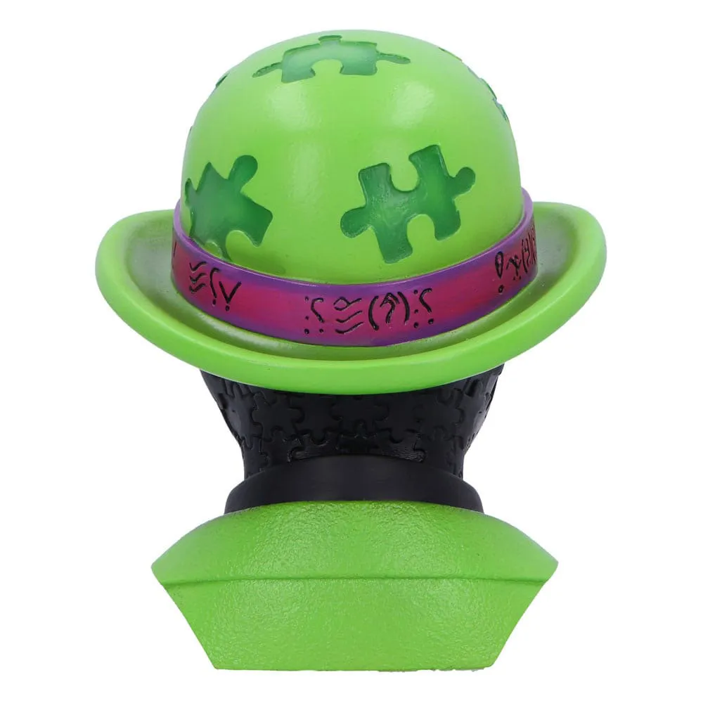 Met de iconische groene en paarse hoed van de Riddler als deksel en een gedurfd vraagtekenontwerp, vangt dit stuk de essentie van Gothams raadselachtige superschurk.