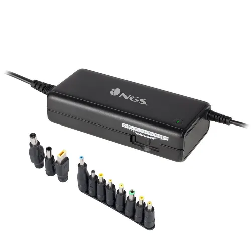 Hij is uitgerust met een led-indicator die oplicht terwijl de oplader is aangesloten op een stopcontact. NGS Ban bevat een speciale stekker die verschillende voltages levert met zijn selector, compatibel met laptops die 12 20 Volt en 90 Watt vermogen of minder nodig hebben. Ten slotte heeft deze oplader ook elf verwisselbare pinnen die ervoor zorgen dat ze perfect passen bij de meeste merken en apparaten die op de markt verkrijgbaar zijn.