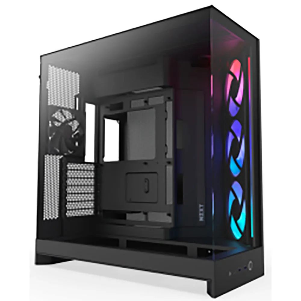 Verhef je PC-build tot een kunstwerk met de NZXT H9 Flow RGB, een prachtig ontworpen ATX mid-tower behuizing die premium esthetiek meesterlijk combineert met uitzonderlijke thermische prestaties. De H9 Flow is ontworpen voor liefhebbers die zowel vorm als functie eisen en biedt een ongeëvenaard panoramisch zicht op je high-end componenten door de ononderbroken voor- en zijpanelen van gehard glas, waardoor een prachtige showcase ontstaat voor je gaming rig of workstation.