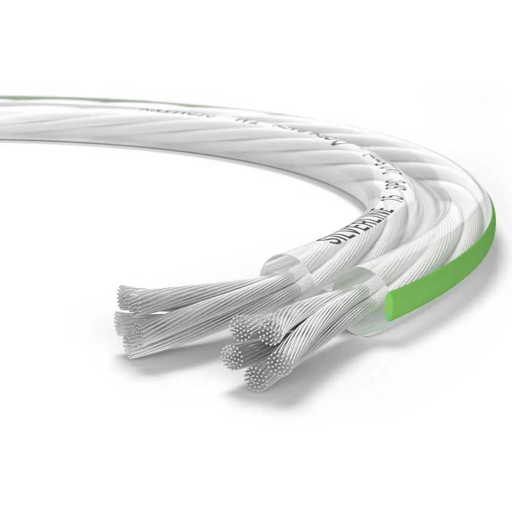 Uitstekend gemaakte stereo luidsprekerkabel gewikkeld op een mini-spoel. Deze luidsprekerkabel is geschikt voor versterkerprestaties tot ongeveer 300 watt per versterkerkanaal. Het gebruik van verzilverd zuurstofvrij koper (Ofc) als geleidend materiaal zorgt ervoor dat een extreem helder en levensecht geluid kan worden bereikt met deze luidsprekerkabel. Het gebruik van zilver om deze kabel te verfijnen, helpt de reproductie van hoge tonen verder te verbeteren. De kabel is ook gemaakt van zeer veel ultradunne gevlochten koperdraden - elke afzonderlijke draad heeft een doorsnede van ongeveer 0,125 mm. Dit complexe ontwerp betekent dat de kabel overal bijzonder geleidend en flexibel is.