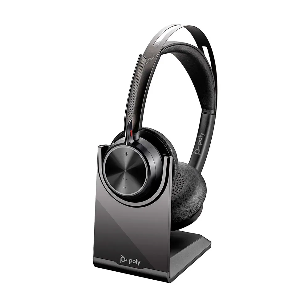 - POLY Voyager Focus 2 USB-C Hoofdtelefoon + USB-C/A Adapter + Oplaadstation.