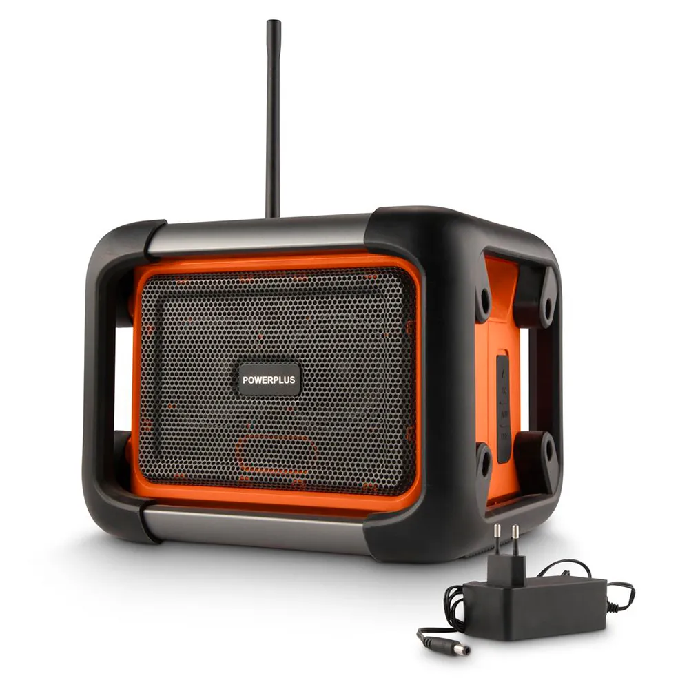 Luister naar muziek terwijl je klust, op een bouwplaats bent of geniet van je tuin dankzij deze snoerloze Dual Power bouwradio! Hij is draagbaar en fleurt elke bouwplaats direct op.