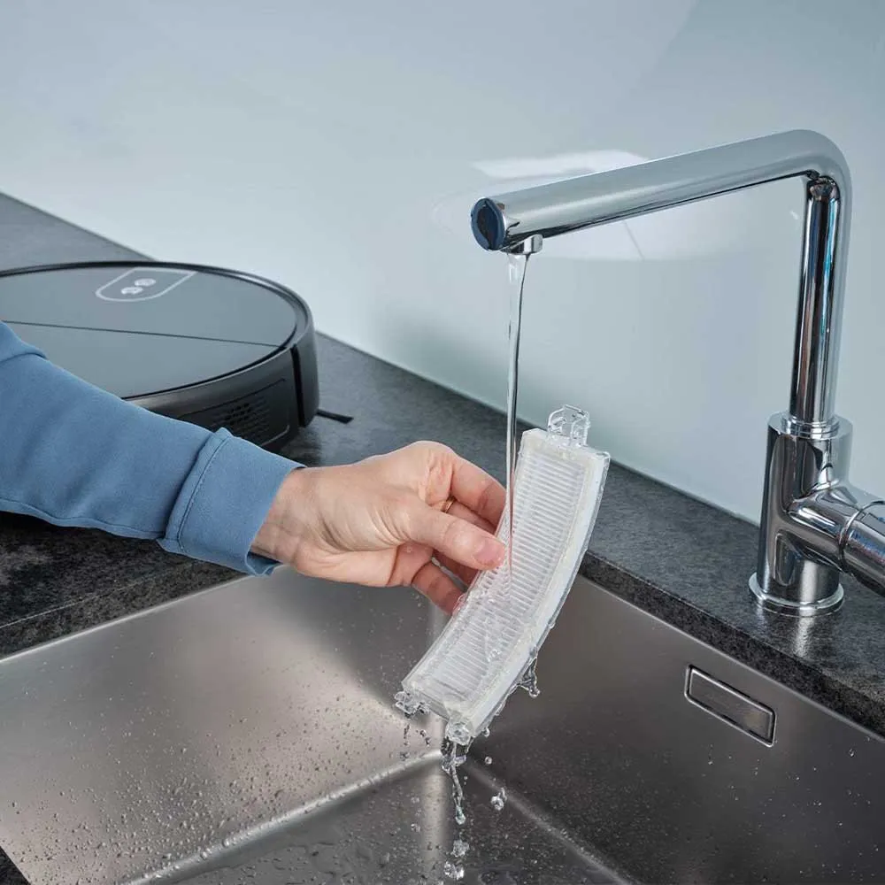 Sustainably cleaned:- To extend its service life, you can clean ROMY´s fine particle filter under running water.