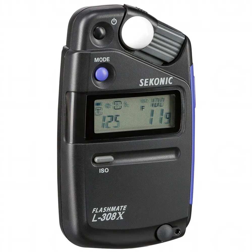 De Flashmate L 308X-lichtmeter van Sekonic, een erfenis van nauwkeurigheid in zakformaat en uitzonderlijk nauwkeurig, is een compacte tool voor het meten van zowel omgevingslicht als flitslicht en voor het werken in video met speciale Cine- en HD Cine-modi. Uitgerust met een verschuifbare lumisfeer, kan de L 308X zowel omgevingslicht als gereflecteerd licht meten via een lens met een ontvangsthoek van 40 °. Ook deze meter heeft een groot meetbereik; van 0 tot 19,9 LW bij ISO 100, en kan werken met flitser binnen een bereik van f / 1.0 tot f / 90.9 bij ISO 100.