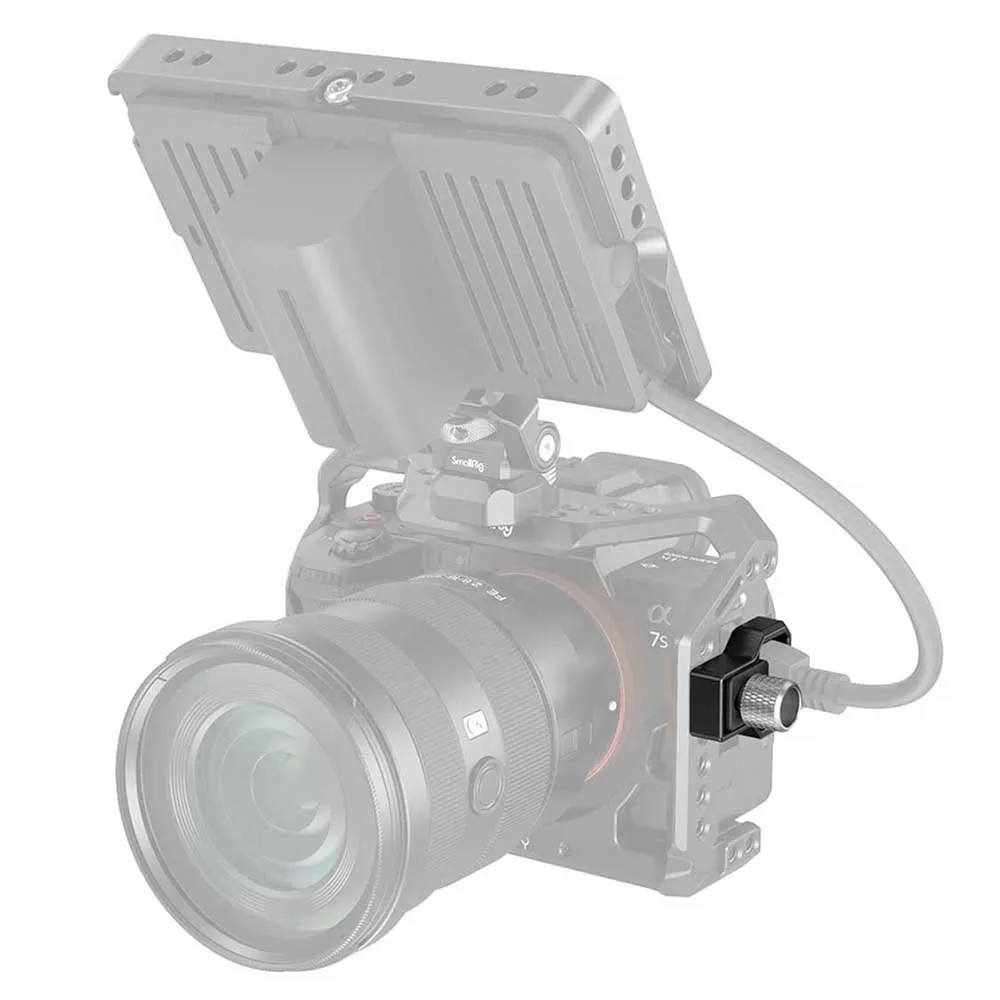 SmallRig HDMI-kabelklem voor A7S III Cage 3000 is compatibel met SmallRig Cage 2999. Deze klem is ontworpen om te voorkomen dat de HDMI-kabel van de camera per ongeluk losraakt. draai pinnen. De gemakkelijk vast te pakken gekartelde 1/4'' 20-schroef past een schuifblok aan dat kan worden vastgedraaid om plaats te bieden aan HDMI-kabels met verschillende diameters. Deze kabelklem is gemaakt van een stevige aluminiumlegering en wordt geleverd met een inbussleutel.