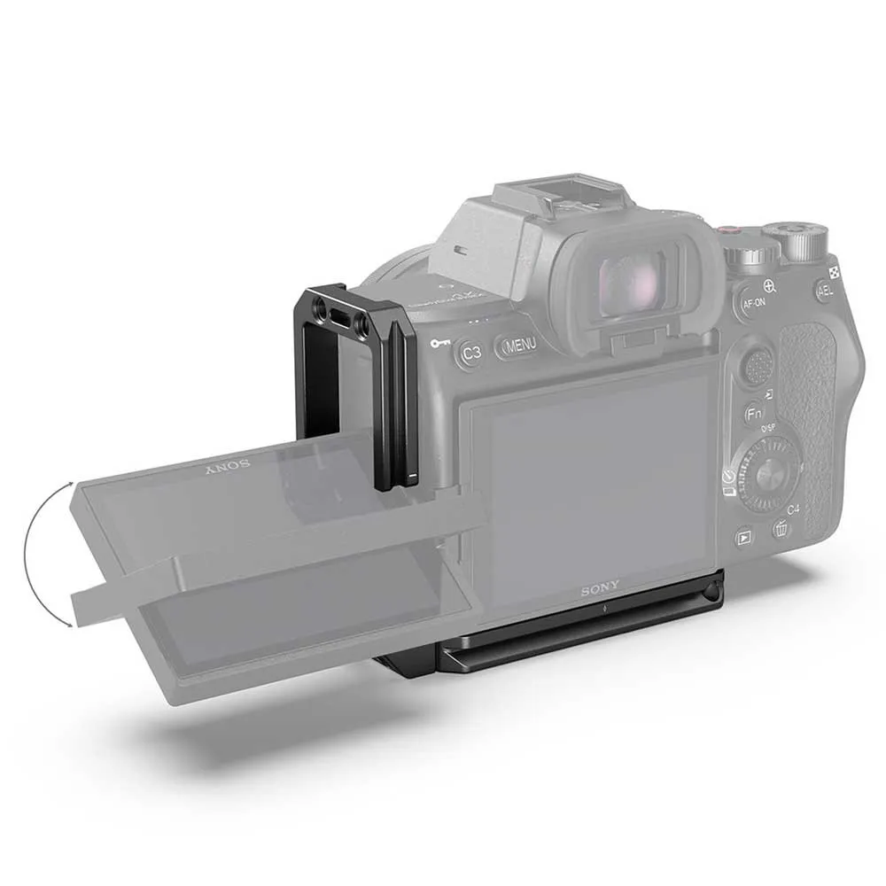 SmallRig L-beugel voor Sony Alpha 7S III A7S III A7S3 3003 wordt aan de camera bevestigd met een 1/4'' 20-schroef, met anti-twist ontwerp en rubberen pad dat wiebelen of krassen voorkomt. Zowel de zijplaat als de basisplaat zijn Arca-compatibel, waardoor snel kan worden geschakeld tussen horizontale en verticale oriëntatieopnamen. De L-beugel blokkeert geen knoppen, poorten, LCD-scherm of batterijschakelaars van de camera. De hele L-beugel kan 20 mm naar links worden uitgeschoven als u meer ruimte nodig heeft voor tethering of kabelontgrendeling. Het wordt ook geleverd met 1/4'' 20 accessoire-schroefdraden voor montage van accessoires, zoals SmallRig Cable Clamp 1822 of SmallRig Cold Shoe Mount BUC2736. Een platte schroevendraaier wordt op de basisplaat bewaard voor gemakkelijke toegang.
